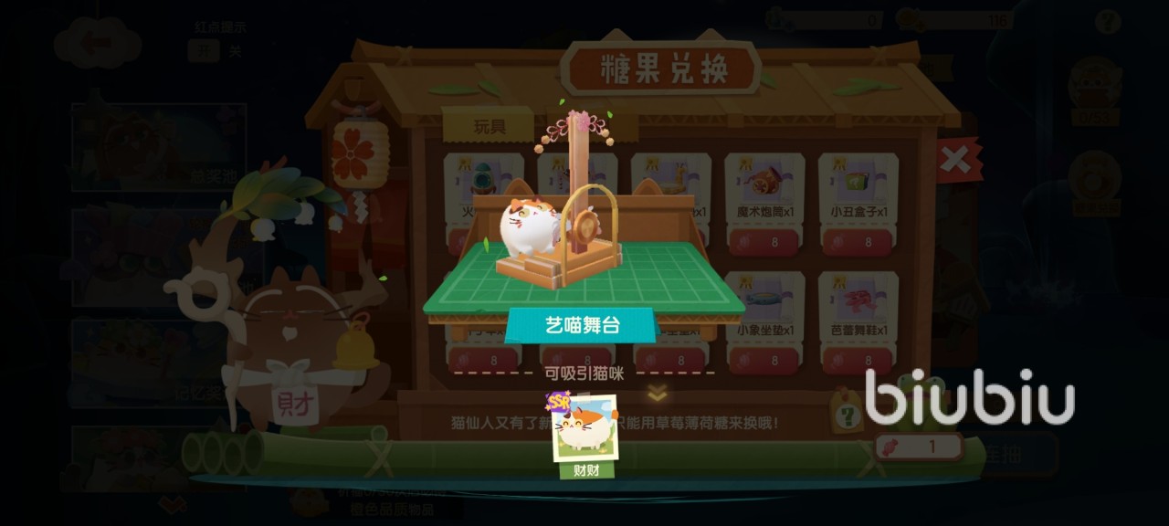 玩具制作要有相应的图纸,有些玩具只能吸引来一个猫咪,有些玩具可以吸引来好几个猫咪,点击图纸可以看到这个玩具可以吸引来哪些猫咪。玩具图纸在总奖池、主题奖池、记忆奖池、材料奖池都能抽取获得,另外,玩家还可以在猫仙人商店中使用草莓薄荷糖兑换。