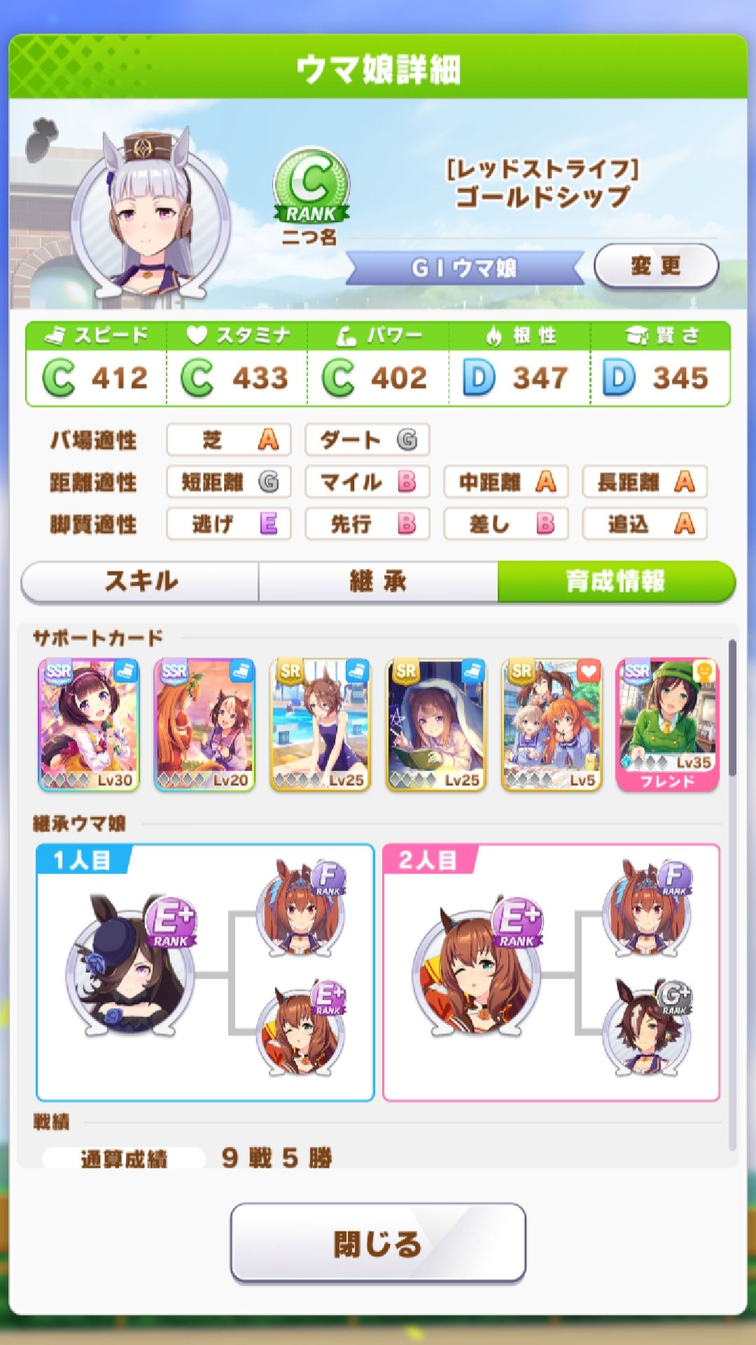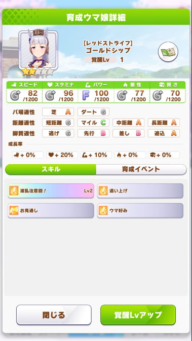 2、看到耐力的成长率+20%和长距离适应性A的话,就会想增加体力,但是均衡地培育是很重要的。