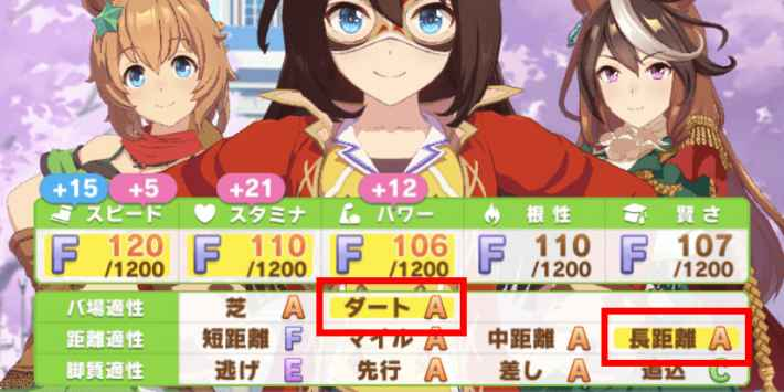 3、应该掌握的技能:弧線のプロフェッサー、直線巧者、末脚、コーナー回復◯、直線回復、直線加速、がんばり屋、差し直線◯、差しコーナー◯。