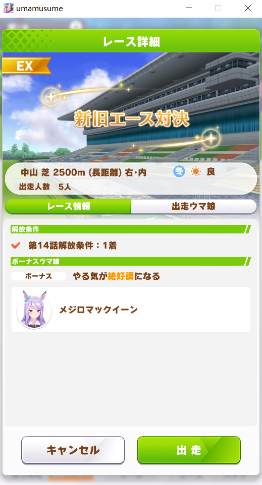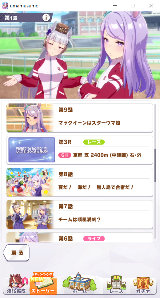 第二章的剧情比赛任务相对容易,两场比赛都是中短距离,非常适合逃马和先行马的发挥,大家可以使用醒目飞鹰或者丸善斯基,东海帝王这样容易培养且大赛表现出色的马娘参赛,很容易就能拿到第一,获得SSR支援卡。