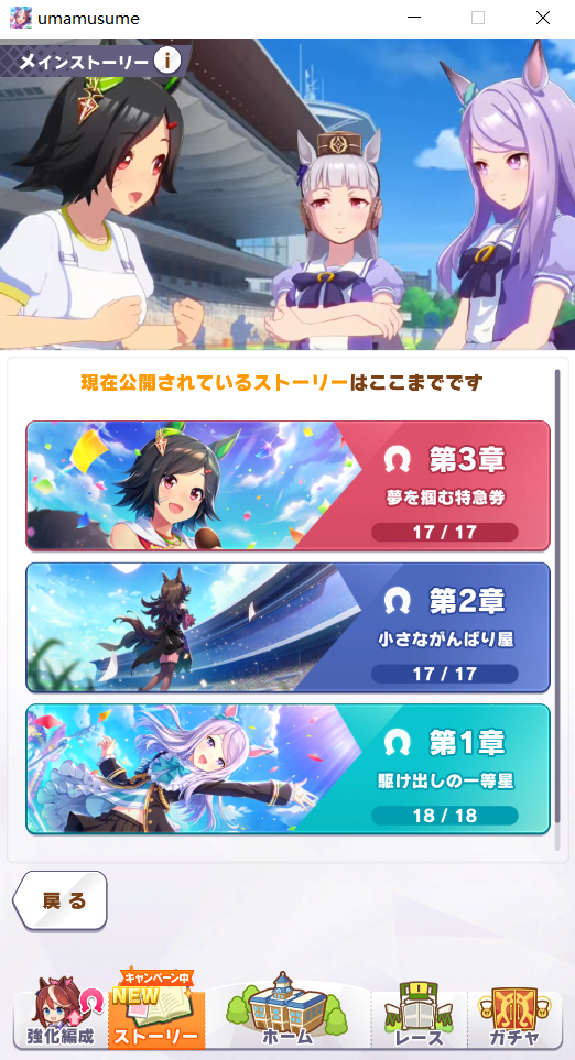 而SSR支援卡任务就是要求我们完成这三章的主线剧情,每完成一章都可以获得一个SSR支援卡。不过在主线剧情中还穿插着几场比较困难的比赛,因此想要完成SSR任务最大的难点就在于如何获得这几场比赛的胜利。