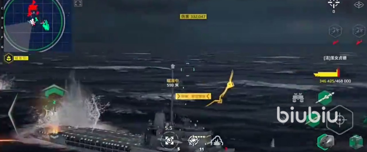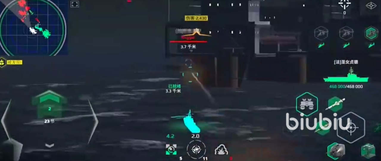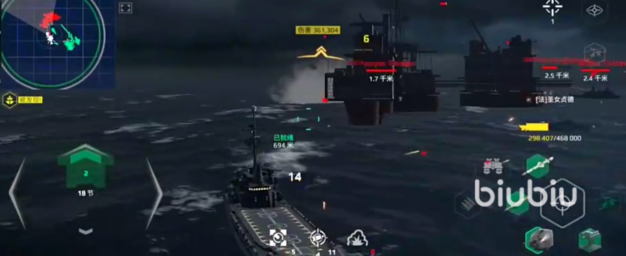 主炮配备多座高精度舰炮,射速快、精度也非常的高,适合进行远距离的消耗,不过对高防御目标输出十分的有限,缺点上很明显,机枪子弹少,持续输出能力弱,需配合导弹补充伤害才能打出想要的效果。