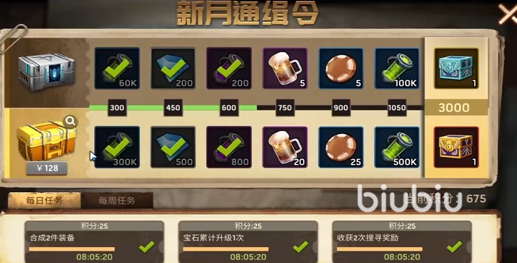 如果玩家们能介绍较高的氪点,那新月通缉令是很不错的充值内容。通缉令是对应每日任务的,建议玩家们在登录后能达到每日任务的各个分支任务,获得通缉令给予的全部奖励,这些奖励道具都是玩家在游戏需求度较高的道具。