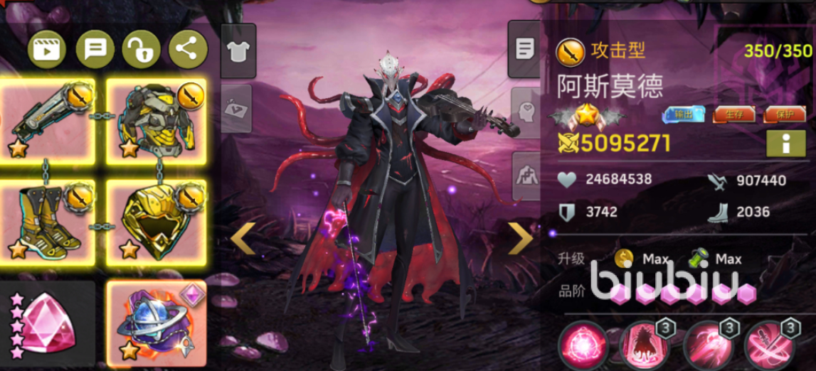 输出能力真不是一般的高,属于那种回合越往后越可怕的爆发C。原力出手优先级目前版本最高,再加上能继承队友死亡后留下的攻击、速度、能量等属性,到后期简直像个变异BOSS一样的存在。尤其是新区开荒的时候,阿斯莫德简直就是神,老魔窟、新魔窟这些高难副本,没有他根本打不动。他还是星海模式的常驻输出,没他就只能靠以前那些退环境的老英雄苦苦支撑。所以建议玩家不管玩不玩竞技,至少得养一只,打PVE很有用。如果资源多一点,甚至可以考虑搞两只,打高塔、试炼这些都能派上用场。据说他很快还会进月度卡池,到时候养两只也算是“尊重版本”。