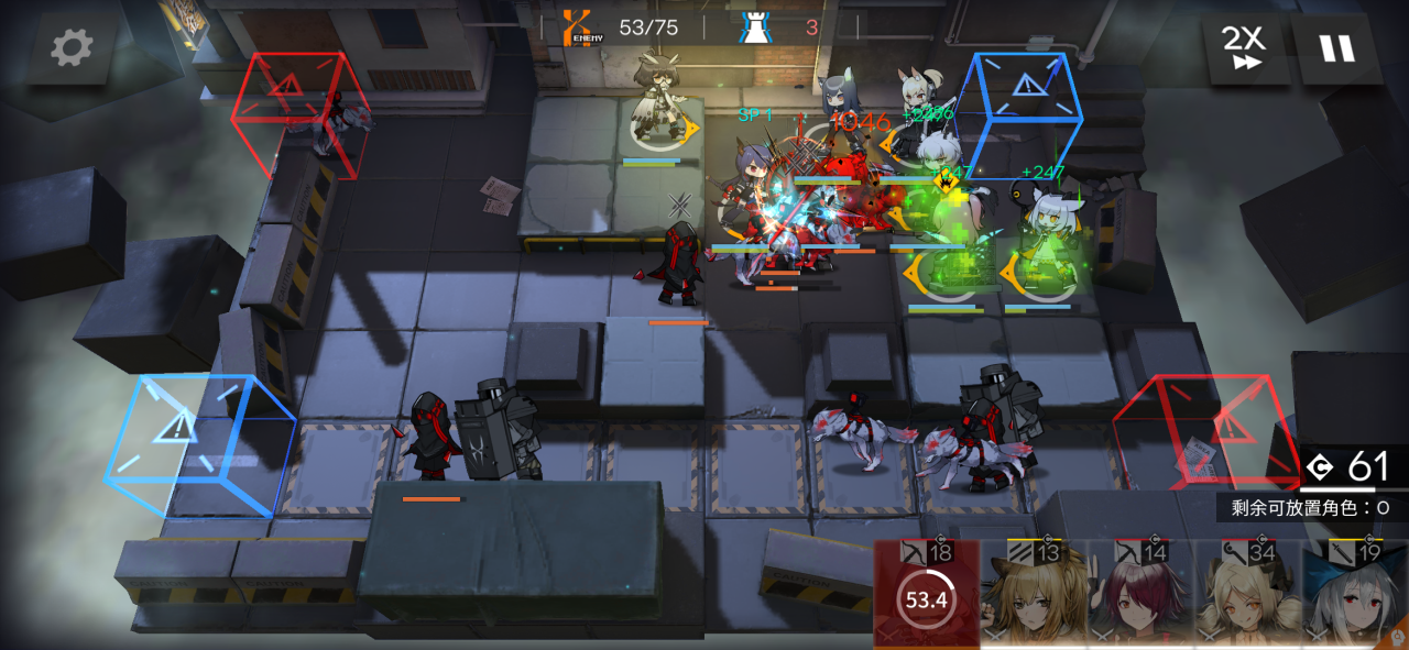 3、将重装干员星熊或年布置在在赫默右方,巩固防线。