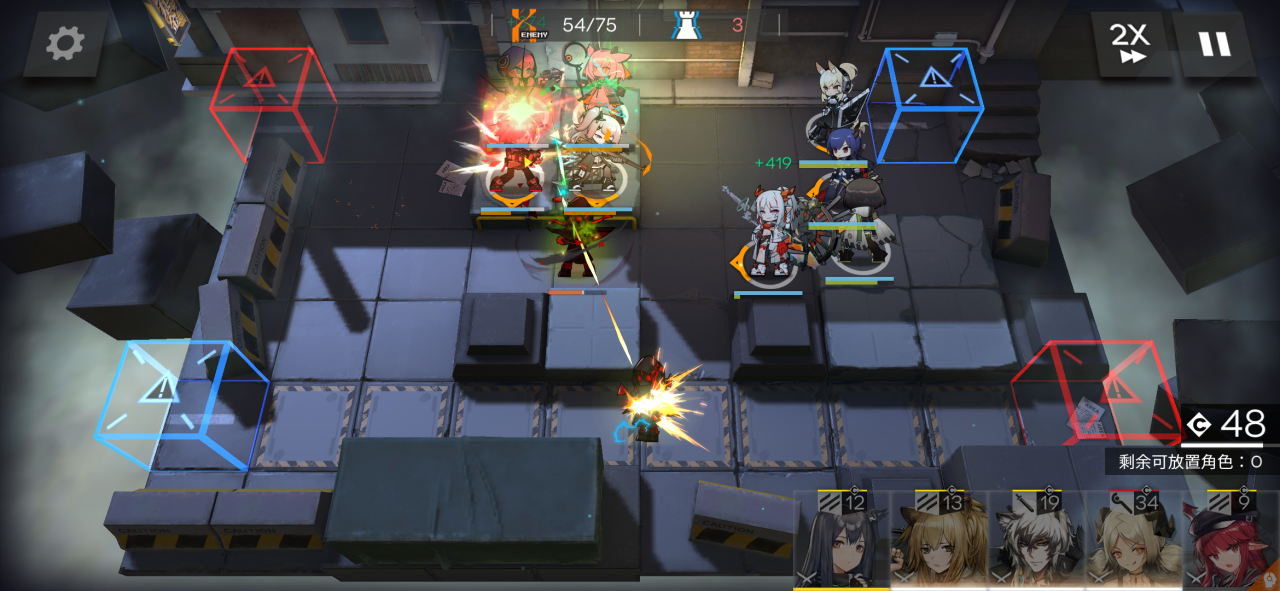 3、依次将能天使、蓝毒布置在高地左侧,消灭环绕行走的术师组长。