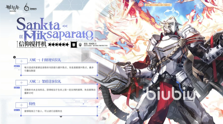 信仰搅拌机就是第三个全新的6星角色了,重装哨戒铁卫定位,1技能和3技能都拥有补发弹药的能力,能明显的提高续航和输出的频次,2技能不仅可以提高自身的输出力度,而且能提升他的防御力,从技能效果也很明显的可以看出,能扛能打的存在。