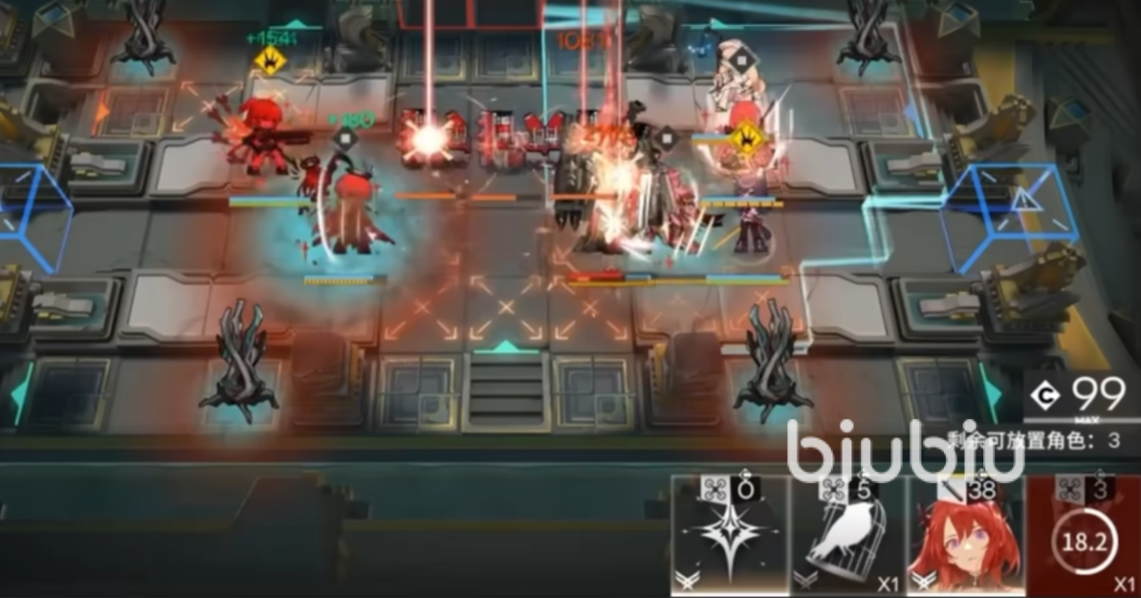 他的特性是能同时阻挡三位敌人并且可以远程攻击,他的技能一“”主考官会让下一次的攻击变成三连击,每次都会造成一定的攻击力比例的物理输出值,并且为周围另一位开启弹药类技能的拉特兰角色补弹1发。