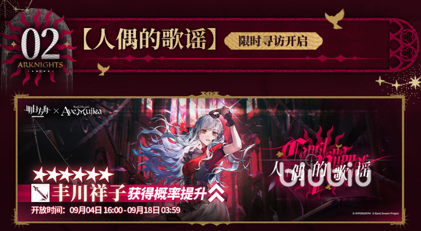 可参与”无忧梦呓”活动关卡,可通过活动关卡作战,演出大厅,去做相关活动任务,以及活动商店,都可获取对应奖励,能解锁人偶,有各种谜题等待解答。开启了联动的限时卡池“人偶的歌谣”,全新的联动角色获取概率提升;本次新增6性干员丰川祥子;五星的三角初华和若叶睦。