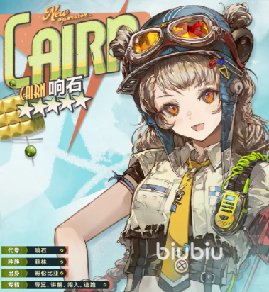 响石是本次游戏更新的新干员,从目前所放出的资料来看,这位干员的身份是一位向导,从对话来看很有可能他是旅行社的社长。整个人给人一种十分活动,元气满满的感觉。她所带过的每一个旅客都对她的服务是赞不绝口,很多旅客对其最多的评价便是专业,也有很多人说她的举止很像一位游侠。