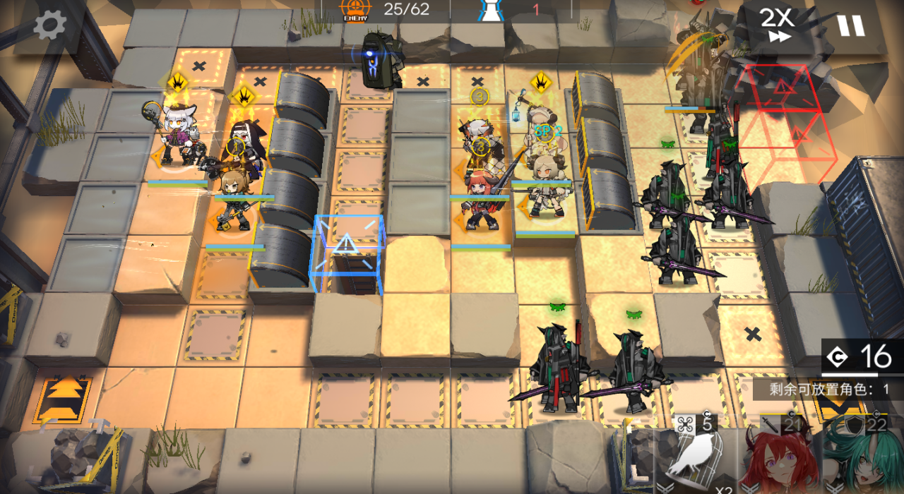 这里的最大难点是羊角术士和魔剑士的群攻,怎么解决这两个高压力路线是本次的通关关键。可以考虑使用早期和后期的决斗技能清理,也可以考虑使用快速复活的干员来结合击破。但这里要留意的是对手攻击二连带暴击,所以夜莺是本次的关键,