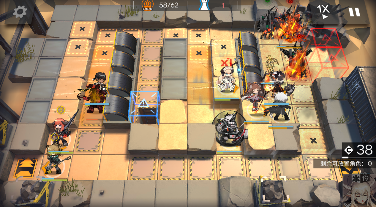 思路是借助小火龙奇妙烧3路的思路,开场左边推王,中央风笛,所有冲左边攻击吃到风的攻击buff,以后部署幽灵鲨和佩戴抢救的塞雷娅,以后顺次在高台放下小火龙,以后补好医治白面鸮和夜莺。在能部署赫拉格时,先扔下去砍死1个羊角术士。