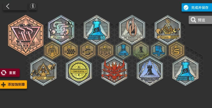 活动奖章现在首要分为微型故事集蚀刻章、黄铁步伐蚀刻章套组、沃伦姆德蚀刻章套组、芒刃步伐蚀刻章套组。现在所得徽章的难度和价格,全都是根据巨细来分派的,越小越容易,另外能够经过涂层来更深入增添徽章获取难度。从展现墙壁来看,像干员联结奖章·Ⅳ等为较大规格奖章,这展现墙至多能够展现十个相似奖章,现在游戏里也只有5枚,在未来危机合约中相似全搜集的奖章一定还是会发布。与此同时假如展现墙其实不变动,辣么在之后,相似上线天数这种已到达较大规格的奖章大概同样会采用屡次涂层来表述更加多天数或招募频次。
