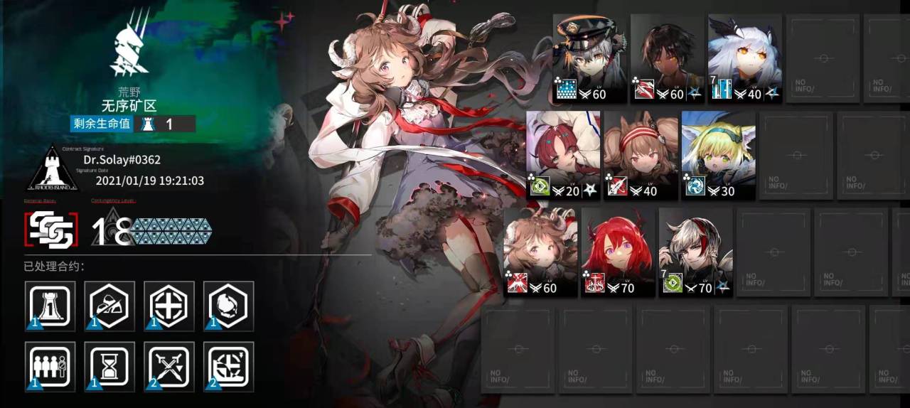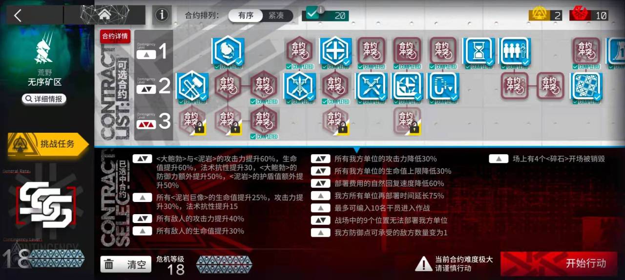 因为点了1级限定佩戴干员数的tag,至多只可以带10名干员,我这儿只携带九名干员也可以通过关卡,剩下的一位视自己局面带上比较适合的干员,而且极境和白面鸮也可以换为作用一样的干员:极境是为了抗衡当然回费速度减60%的debuff,在首先石块人到来之际将阵容进行结束,可换为其它先锋的产费技能;白面鸮的加血实际上用不上,而是借助她的技力光晕,加速最终这波决临战加速塞雷娅的钙质化反转展转罢了,同样的道理可换为其它能拖时间的干员。