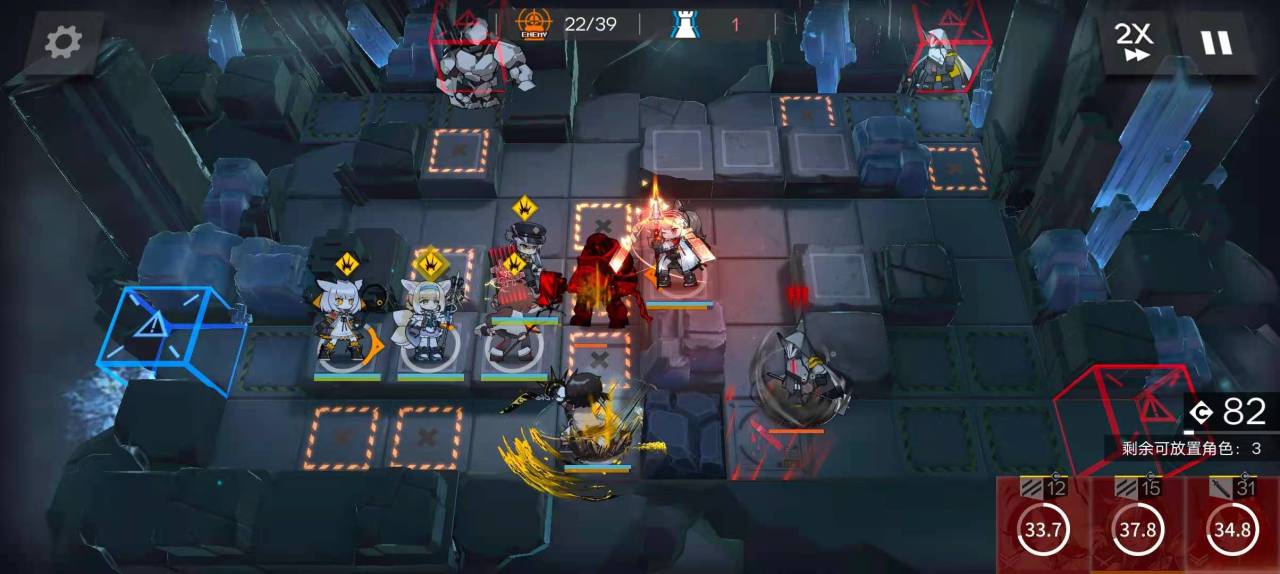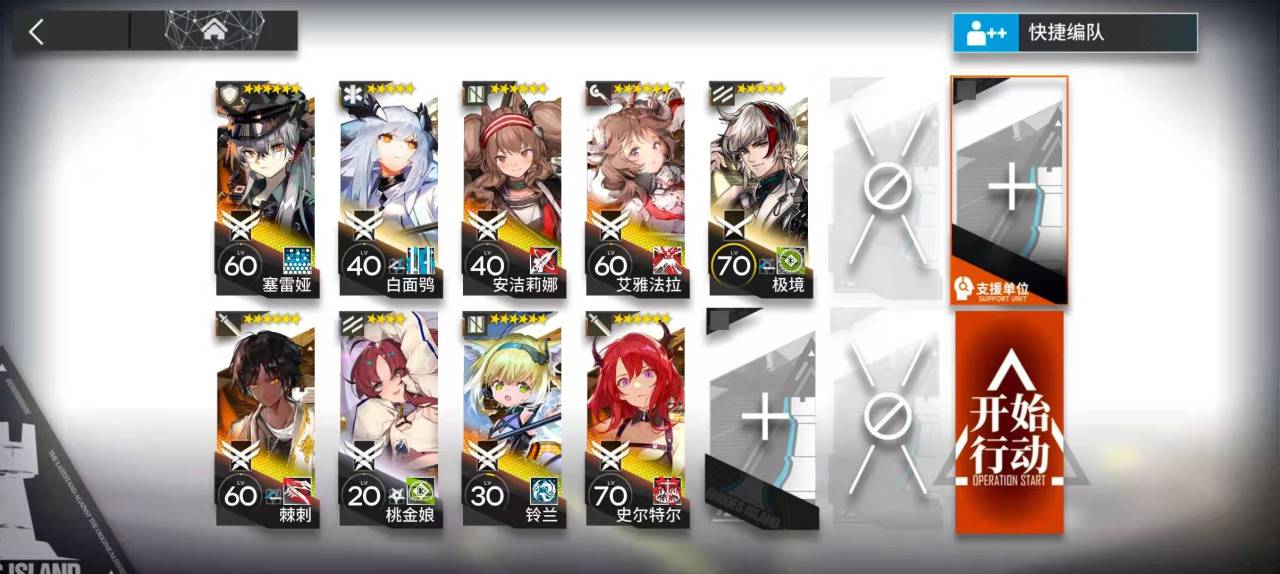 开场先下桃金娘和极境爆费,留意要极境卡一下下第一个怪,等用度足够布置棘刺再开技能。以后按图为地方放置,次序方面撇开先上安洁莉娜,塞雷娅最终放外没讲求,安洁莉娜朝左,铃兰和艾雅法拉朝上;桃金娘和极境在阵容进行结束后早日转移,后续还可以当拖延时间的道具人。