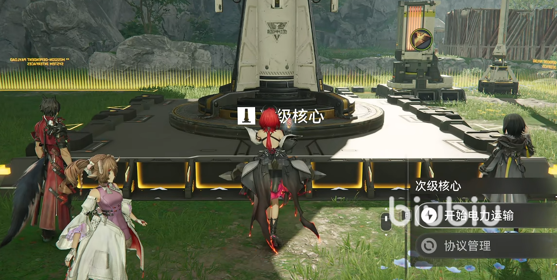 而之所以带中继器则是因为地图里面有些区域是需要通电才可以拿到宝箱的,不通电是完全进不去的。我们先从谷底通道这个地图开始,一开始咱们在临时避难所,这里有一个次级核心,我们需要先给它进行充电。充完电后咱们转一圈可以看到一个黄色小人,这里可以拿到1点基础工业点数。接着我们转向北方移动,在路上可以看到一个醚质,这个资源在我们靠近的时候会移动,咱们需要一直跟着它便可以拿到了。