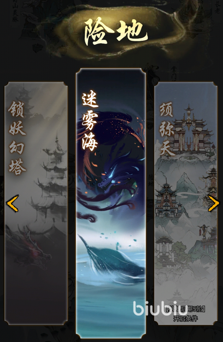 险地主要存在于我们的禁地之内,玩家可以在进入练气期之后解锁禁地板块,下拉就能看到险地的玩法。在这里面一共会有六种挑战模式,分别是昆吾山、锁妖幻塔、迷雾海、须弥天、游历以及登龙台。其中前三个在炼气期就能解锁。须弥台需要达到筑基后期才可以解锁,游历的话需要在玩家飞升之后才能开启,最后一个就是登龙台,这个对玩家的实力要求非常严格,需要玩家达到合体一期才能解锁。