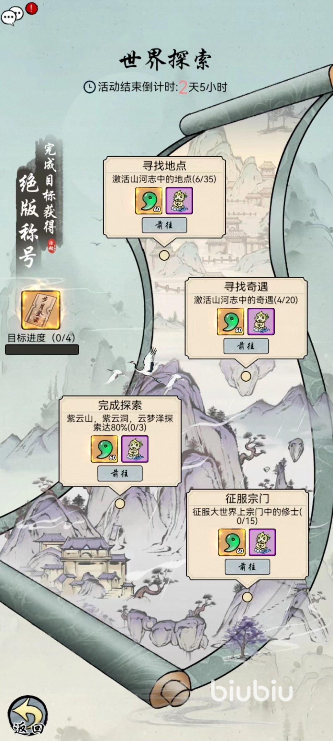 第5项是世界探索,只要去指定的地图完成探索任务就能获得大量仙玉和人参果等奖励。在加入宗门之后开启宗门齐心,只要宗门里的成员达到指定条件,所有成员都可以领取到奖励。最后是问卷填写,只要耽误几分钟填写一份问卷,就获得仙玉和大量灵石,填写问卷也能够帮助游戏更好的改进。