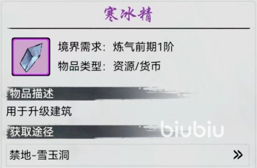 在梦入云山中,除了招募仙友自己选择流派提升实力外,禁地里还有大量等待建造的功能性建筑,而寒冰精就是升级建筑必备道具之一。点击进入到禁地之后,在下方可以看到神铸台、炼丹房,紫杉林,雪玉洞等一系列建筑,都可以利用寒冰精来升级。等级直接影响生产资源速度和锻造,炼丹等效率,对于修炼来说非常关键。