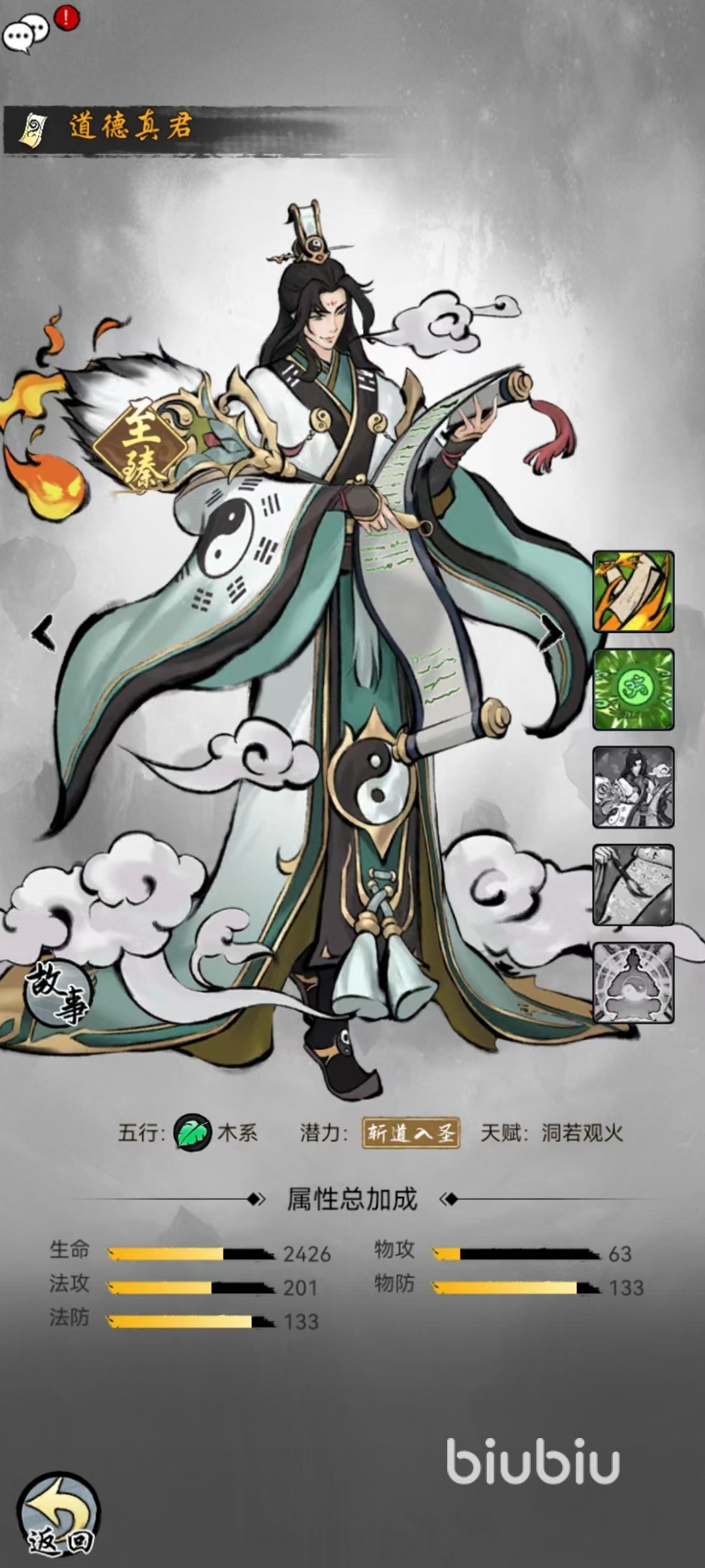道德真君普通招式扇生五火,在对敌方造成输出之后有额外几率获得一点火灵,火灵就是释放火系神通招式的基础,火灵积累的多自然招式放出的时间就越靠前。神通招式混元归一,伤害敌方全体目标同时能够扣除敌方五点随机灵力,并且己方回复六点火灵。能够回复火灵使得在阵容搭配的时候可以额外选择一名火系输出型仙友,这样可以带来更好的效果。