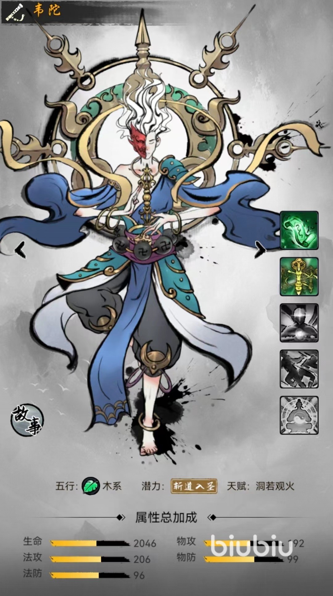最后一个韦陀,招式降魔咒能够对敌方目标造成一次物理伤害,但是在计算时将自身的法术攻击和物理攻击全部折算进去,输出之后还有几率获得加速状态,临时提高速度。神通招式韦陀献杵,同样伤害敌方单体目标,虽然没有太多效果,但是在单体输出上无人能及,再加上有灵力加持和速度加成,可以做到率先出手秒杀。