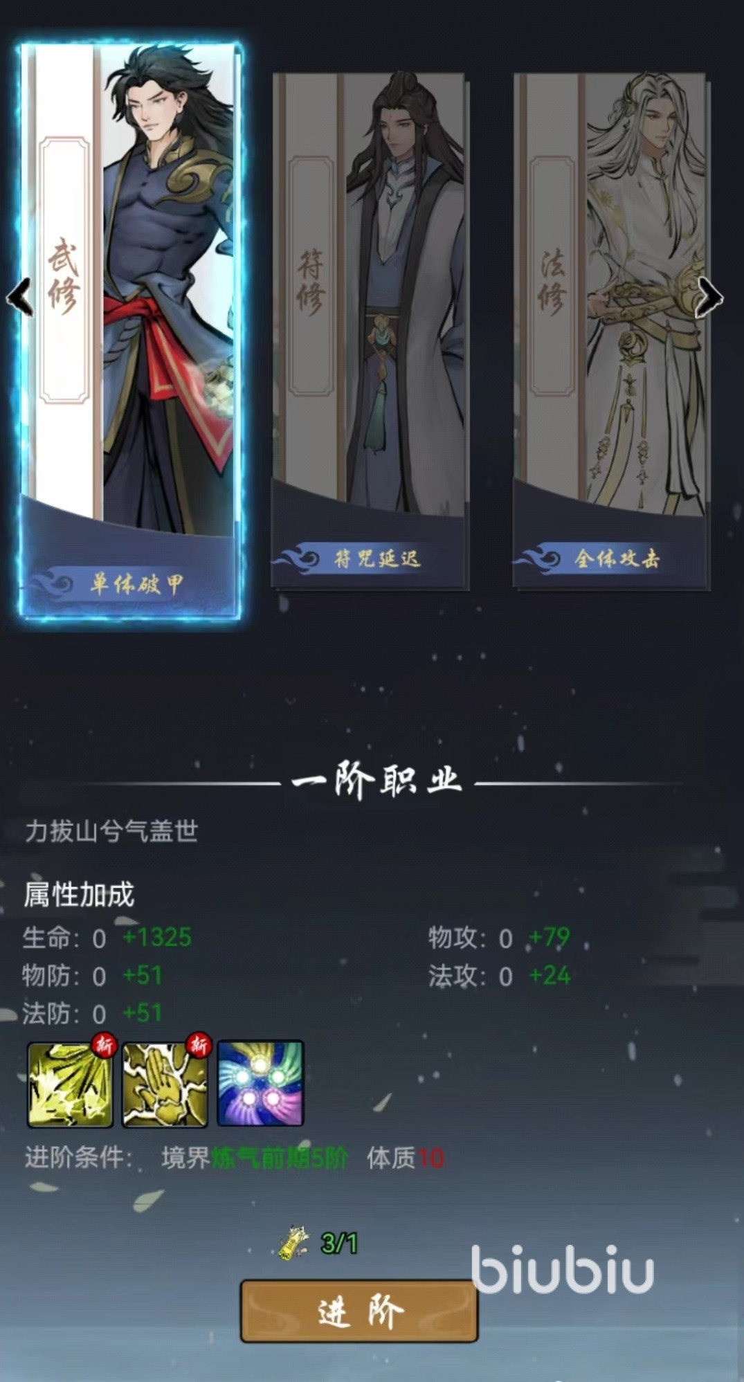 选中之后先不要着急确定,在总览里可以看到每一个流派后面进阶分支,例如武修往后面可以进阶为大宗师,再往后是战皇和武魂,这就产生了两个不一样的路径,再往后有斗宗、霸王、武圣、武尊,最后进阶到修罗尊者,裁决尊者、极意武圣、八荒之主。每一次晋级都是实力上的重大飞跃,也将解封更多心法和在神通招式上变更。可以先将每一个流派进阶路线都看一遍,然后再选择适合自己的类型。
