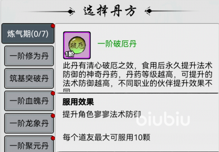 想要完成炼丹,玩家需要先解锁丹炉,丹炉是需要玩家达到炼气后期才能解锁的,可以直接进入禁地界面解锁炼丹房,在炼丹房内我们可以选择不同的丹方,直接点击丹方界面,在炼气期会有七种丹方,玩家可以按照指定的要求去集齐炼丹材料,首先炼丹最需要的就是先天灵液,这个也是有品阶之分的。前期获取方法很简单,我们只需要前往禁地或者是挂机就可以快速获取。
