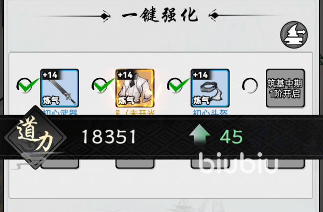 另外,玩家们还可以通过装备武器的方式获取修为,游戏内可是有很多武器装备存在的,还有一些护具之类的,我们可以使用这些武器装备提升个人实力,每一个装备的属性都不是固定不变的,我们可以不断地给其升级升阶,在后期实力不断地提升的时候,我们还能更换更高品阶的武器,能为我们精准的提升修为以及战力。