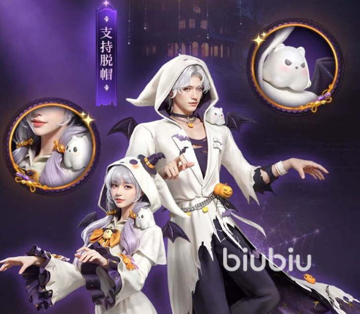 与之形成鲜明对比的是充满童心与顽皮气息的“床单小鬼”套装。柔软的白色床单、晃动的南瓜灯和系着蝴蝶结的小帽子,幸存者们化身可爱的万圣捣蛋鬼。无论是要去索要糖果,还是偷偷吓人,都格外应景。同样可以切换是否戴帽,露出精心打理的发型与妆容。