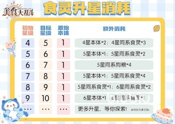 以此类推,基本上都是需要这些材料我们才可以顺利的完成升星,最高品阶为十星,之后就能达到角色的最高战力了,那么今天给大家带来的美食大乱斗升星材料表就介绍到这里了。