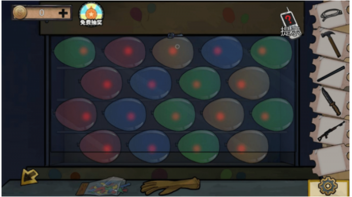 完成之后我们就可以去打气球了,我们只要打有钥匙的气球就好,就如下图第一排第三个。