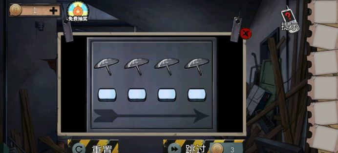 之后我们走到四楼,用锤子敲开玻璃罩,输出密码,打开铁门,然后把启动按钮装在门上,完成解谜游戏后就可以打第二扇门,进去天台。点击箭头俩边会进行互换,将他们按照正确的形式互换,点击中间的按钮就可以了,是一个比较常见的解谜游戏。