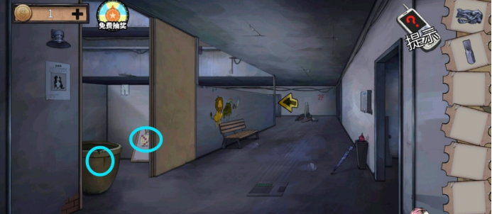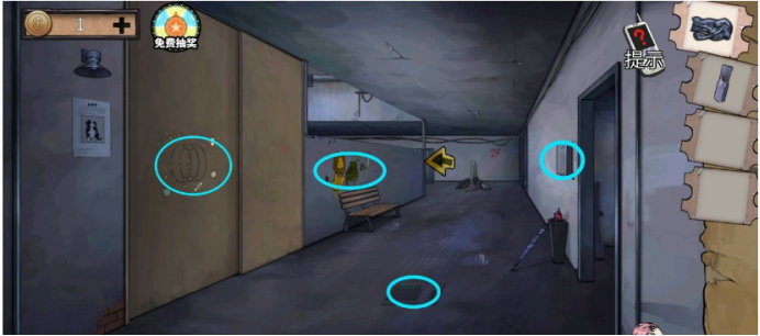接下来我们换场景去洗衣房,拿走水池里的螺丝刀,并记住水龙头的方向,在点击下水道的盖子,得到胶带。接着将他们组合一下,右边的电箱缺少闸刀。
