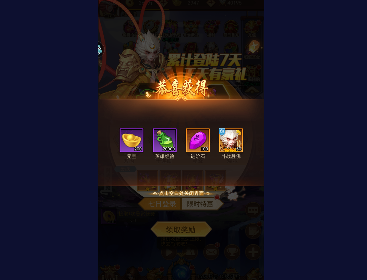首先是我们得人物等级,这个非常好提升,我们在这款游戏中是可以挂机的,最高可以累积12个小时的挂机经验,哪怕我们什么都不做,每天只是单纯的挂机都会有非常丰厚的奖励。除此之外我们还能通关各种副本,接取任务来提升人物的等级。人物的等级越高,可以解锁的玩法也越多,英雄的上限也越高,所以大家赶快去提升人物的等级吧。