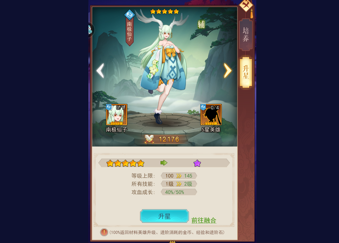 我们有了多余的英雄千万不要嫌烦,因为这些英雄都是可以升星的,升星需要除自身以外的其他同种族的英雄。所以我们拥有的英雄越多就越容易培养出更高星级的英雄。升星之后英雄的上限都会提高,具体提升哪些数值小伙伴们可以自己在游戏中查看,因为每个英雄的状况都是不一样的。
