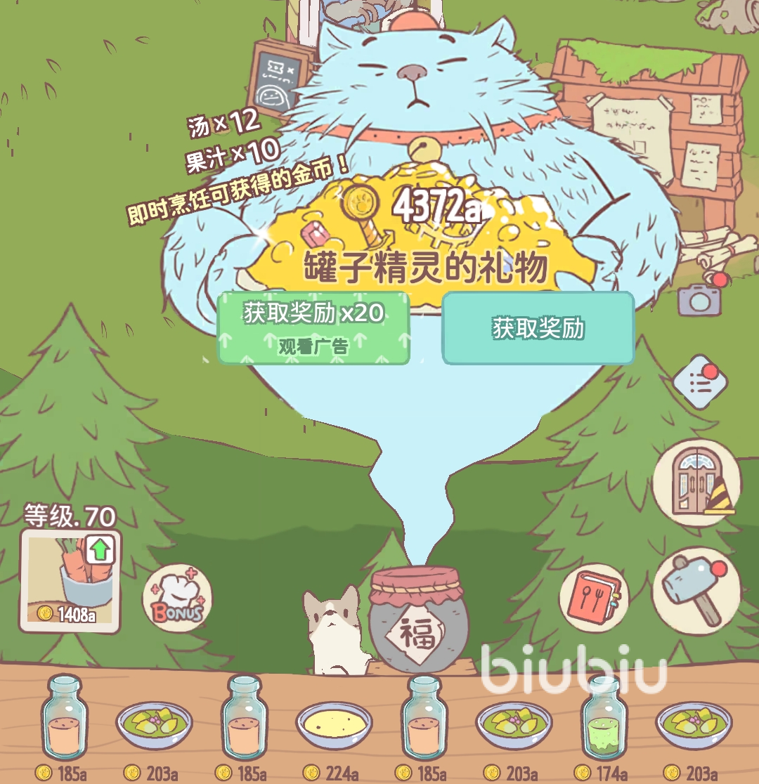平时猫咪会给小伙伴们做出各种食物进行售卖,换取金币,这就是简单的赚取金币的形式。有的时候还有罐子精灵出现,可以给大家带来金币奖励,像这样免费的福利基本上是不能错过的。