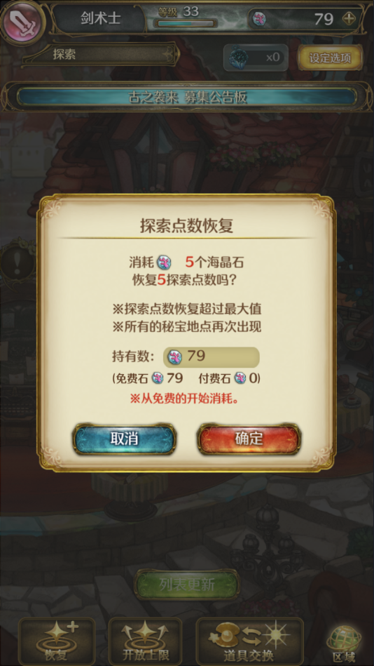(2)探索次数:探索功能是有次数上限的,一开始初始次数为5次,玩家可以通过使用海晶石来增加次数上限。每个小时系统会自动恢复1点次数。
