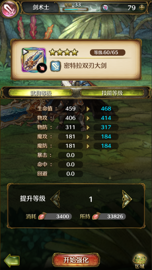 (2)技能等级:装备的技能也有等级,也可以使用双数材料或者是辉石来提升技能的强度,还能装备技能的冷却时间。提升的效果可以在装备面板查看可以查看。