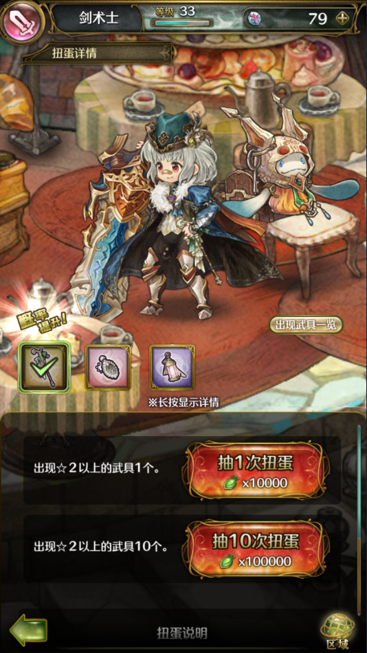 1、最左边的池子活动池子:各种新武器,限定武器,限定防具(职业校服)池子等等均在此分类。每天会有1次最新的特定武器池子的免费扭蛋,和5次5分钟CD的普通池子免妻扭蛋。