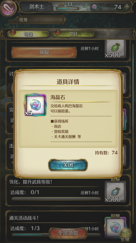 (4)每日任务:完成每日任务可以固定得到海晶石,有几天就能凑够海晶石了。