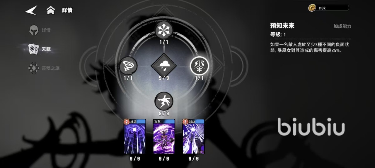 终极技能御风者,对目标区域内的敌人造成特殊伤害,目标区域内每有一个处于负面状态下的敌人,暴风女都可以返还20点终极能量,最多返还100点。虽然终极技能的能量消耗达到了400,但是因为有能量返还机制,所以在操控过程中只要注意阵容搭配,配合上较多的有减益状态的队友,暴风女的大招释放频率还是能够得到保障的。除了小编上面所说的霹雳火之外,其他具有负面状态的英雄都可以搭配起来。因为暴风女还有一个天赋预知未来,如果敌人处于至少三种不同的负面状态,则造成的伤害还能再一次提升,所以队伍中的负面状态技能越多越好。