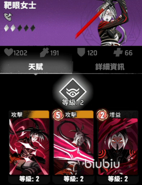 从目前的资料来看,因为游戏测试较少的缘故,所以目前的卡组搭配也不是很多,接下来便为大家来介绍一下当下的一些使用较多的主流阵容。首先第一个介绍的便是追击队。这个队伍的核心角色是靶眼女士,这个角色的获取难度难度很低,大家在通过游戏的第一章之后便可以获取到这个角色了。别看她是一个紫色人物,她自身的属性并不低。她自身的核心能力是她本身的被动。