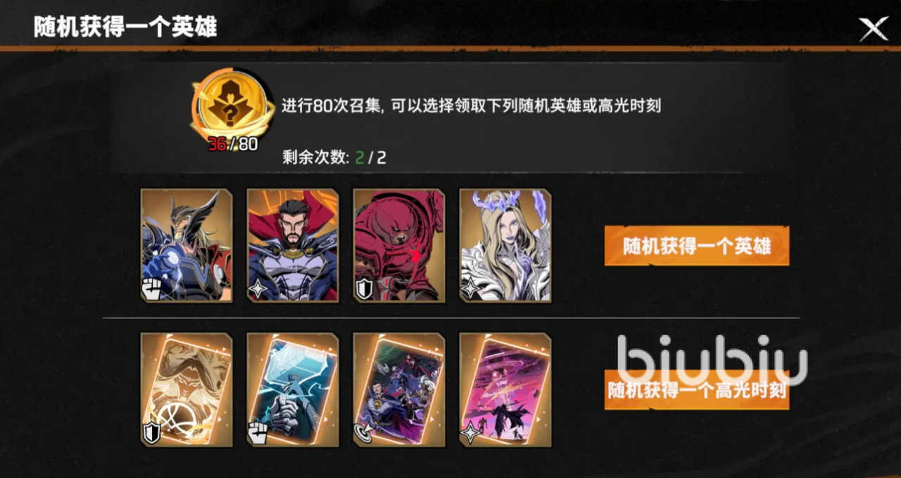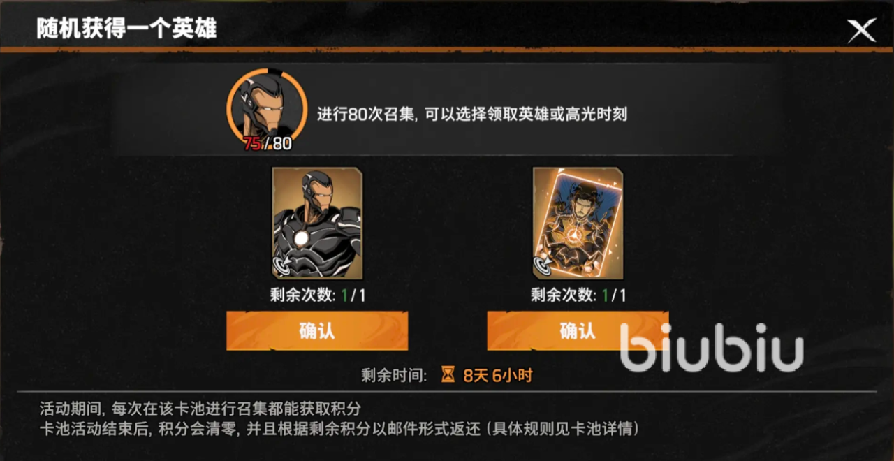 先说明一下,在奖池当中,只有角色卡和高光时刻卡,没有什么乱七八糟无效道具。在普通奖池里面,80抽保底能获得3星角色卡,或金色高光时刻卡,40抽之后概率递增;活动卡池中,累积40次保底获得3星角色,比如雷神,钢铁侠之类的,首充还有钻石的奖励。