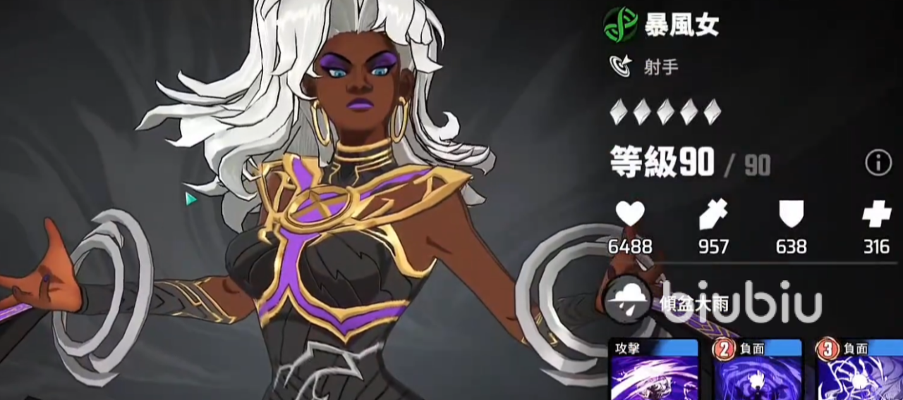 暴风女可在七天任务中获取,技能机制完全围绕负面状态展开,是典型的持续伤害与群体控制结合的代表。被动“倾盆大雨”能让她对负面状态敌人造成额外伤害,技能“暴雨”附加潮湿状态,让敌人输出降低;“冰雹”能带来冻结效果,降低敌人攻速;终极技能“御风者”则能在大范围内造成伤害,并根据目标负面状态的数量返还能量,让她能高频释放大招。天赋优先选择“倾盆大雨”和“寒冰奔涌”,进一步提升对负面目标的伤害。