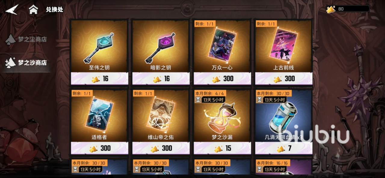 钥匙:当我们完成主线或支线后掉落,此外大家主动去挑战特定关卡获得钻石后也能进行兑换。