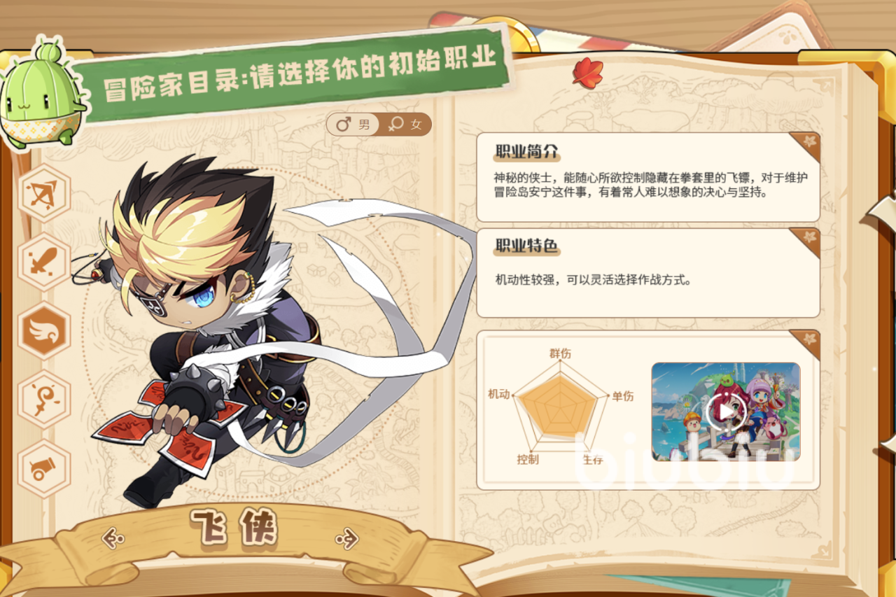 飞侠是所有职业中最吃操作的,作为近战职业,飞侠的机动性很强,非常灵活,能不断对敌人进行骚扰和打击,作为刺客,飞侠自身的伤害量也是很高的,手速够快且时机把握准确的情况下能对敌人达成秒杀,其飘逸灵活的身姿大有一种万花丛中过,片叶不沾身的意思,在1V1战场中神出鬼没的飞侠往往是敌人最头疼的存在。