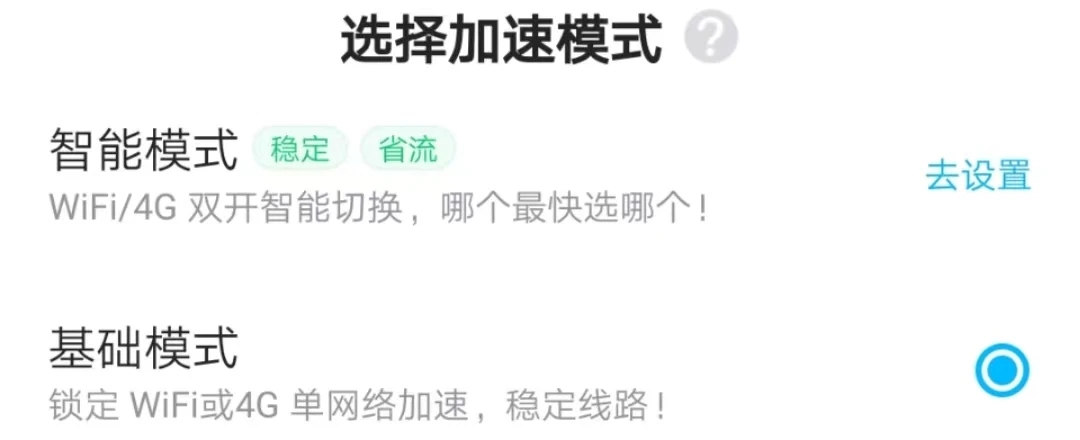 如果用智能模式的话,那么相对就更加节省流量一些,也更加稳定一些,一般玩大型的游戏的话推荐还是用智能模式更好一些。