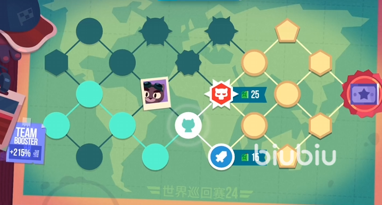 这个巡回大奖赛活动是一个常驻类型的活动,该活动中玩家可以看到三个不同的形状,这三个形状分别圆形、圆形带刺和五边形,这三种形状分别对应这三种难度的关卡,这三种关卡分别是普通、精英和未知。