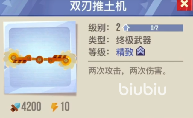 接下来是一个叫做冰川威胁的部件,该部件依然是一个底盘部件,品质为精致,血量为7200,能量为30。在它之后是一个武器类型的部件,该部件叫做突刺,突刺的品质为精致,攻击力为3500,能量为5。突刺之后是一个叫做双刃推土机的终极部件,该部件的品质为精致,攻击为4200,能量为10。