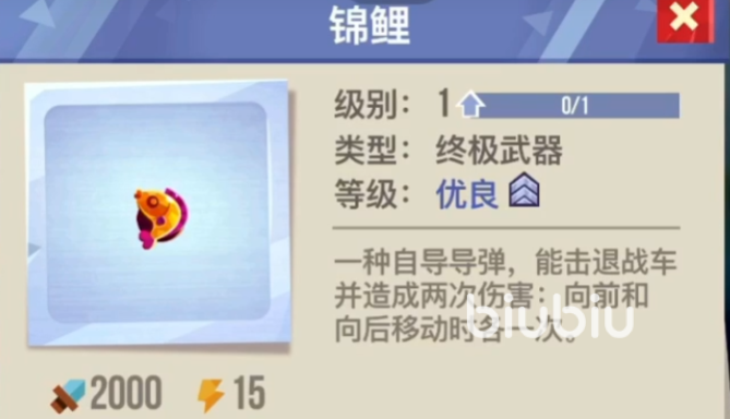 在往后是一个叫做锦鲤的武器类型部件,该部件品质为优秀,攻击力为2000,能量为15。锦鲤之后的下一个终极部件也就是一个武器类型的部件,该部件叫做大男孩,品质为精致,攻击力为4620,能量为10。